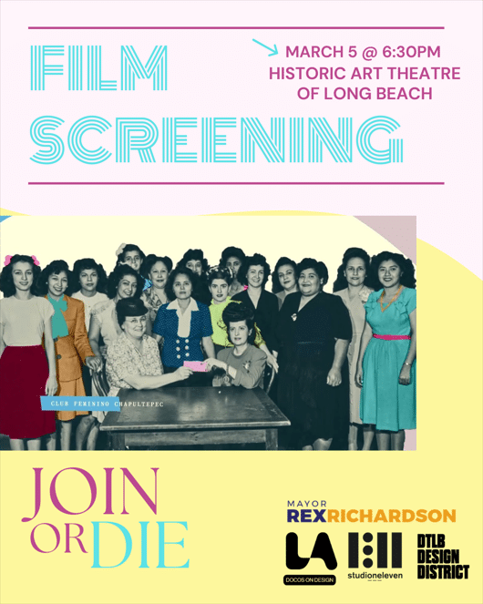 The Downtown Long Beach (DTLB) Design District is eager to announce it’s partnership with The City of Long Beach Mayor’s Office and LA Deisgn Festival, hosting a special screening of Join or Die